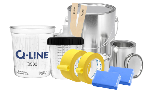 Q.Line has a wide range of accessories and tools for bodywork. Some of these products are mixing cups, plates and supports for abrasive discs, and health and safety products for the panel beater and painter.